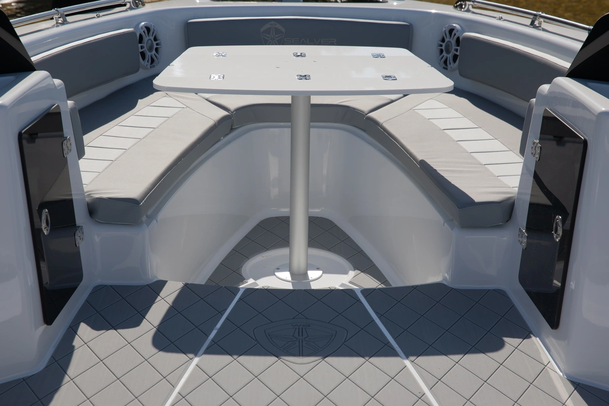 Spacieux et convivial, ce modèle possède toutes les qualités d’une coque open. Un vrai espace de partage, un look puissant, une étrave haute, mais surtout un design résolument dédié au confort de ses 7 passagers. C’est l’allié parfait des sorties en mer, une vraie base aquatique permettant d’osciller en un rien de temps entre jet-ski, wakeboard, plongée ou farniente !